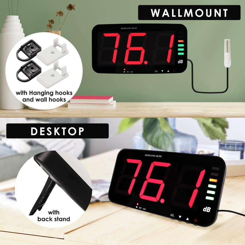 • 【16.4 Feet Sound Sensor】DANOPLUS wall mounted Sound Level Meter is designed with 16.4 feet extra Long sound sensor, you may detect all of the sound source around based on your need