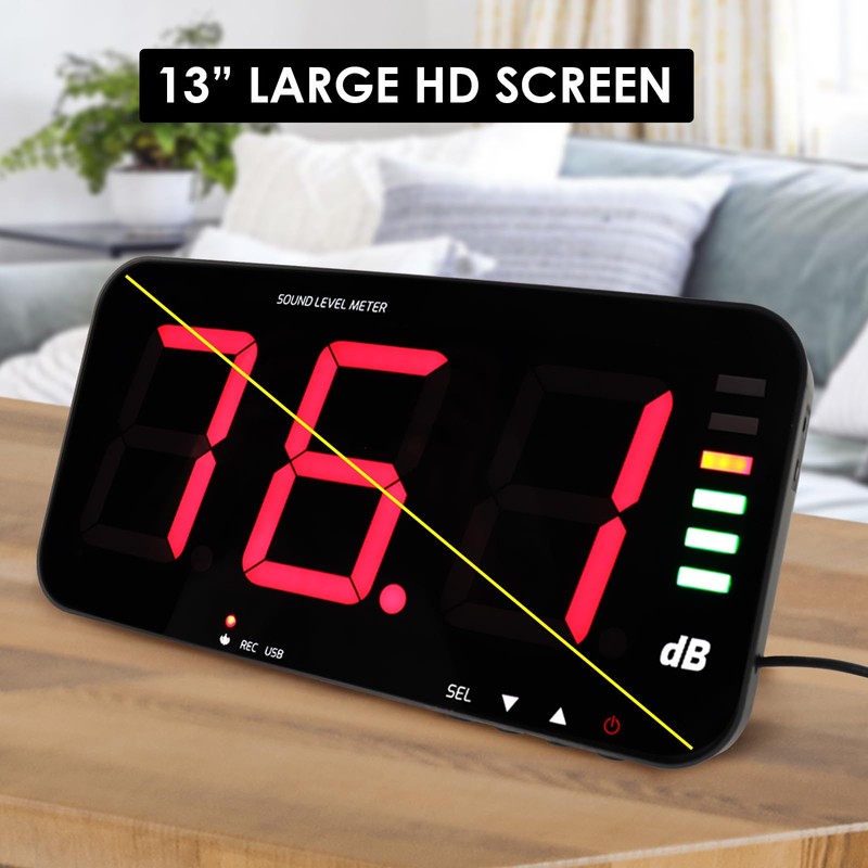 • 【13-inch HD Screen】13 inches HD Display Decibel Meter, each single word is 4 inches, which is able to monitor the sound level clearly