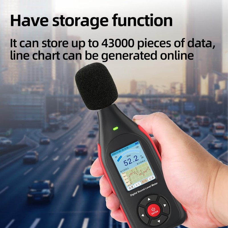 - 【Large Data Storage & Export Capability】Equipped with the ability to store up to 43,000 data points, allowing you to monitor and track sound levels over time. Data can be easily exported to a computer for further analysis, making it ideal for professional sound assessments.