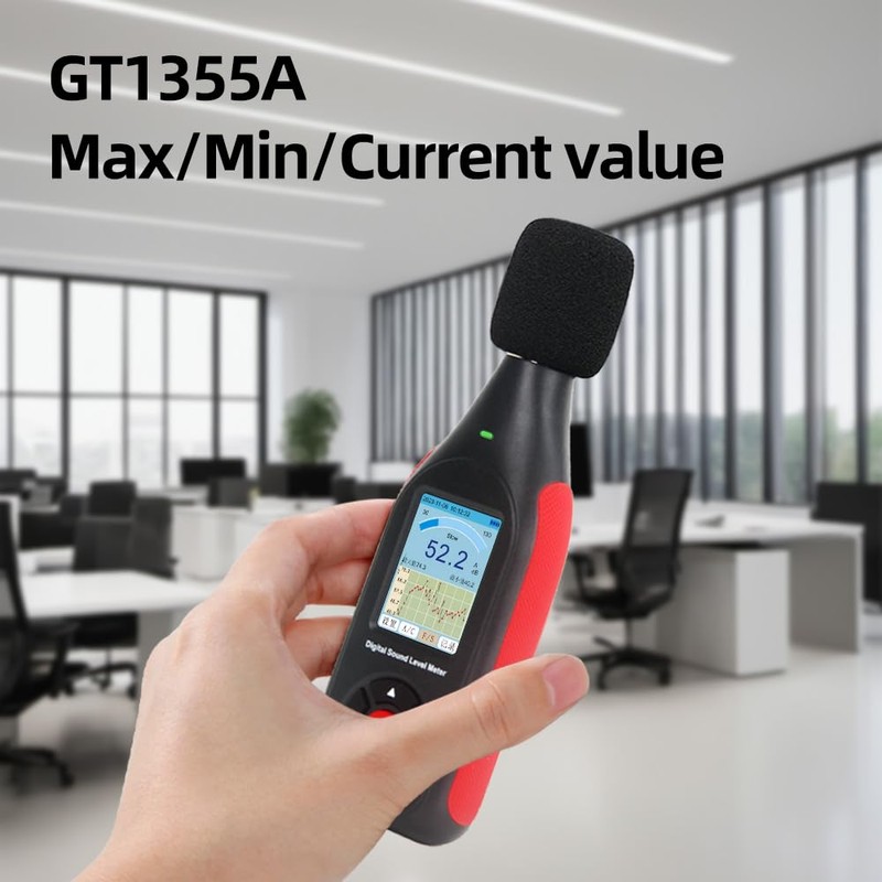 Decibel Meter, Handheld Sound Level Meter 30 to 130dB A/C Weighting Noise Tester,PC-Connectable, Data Analyzable, Color-Coded Alarm, Portable and Rechargeable (GT1355A)