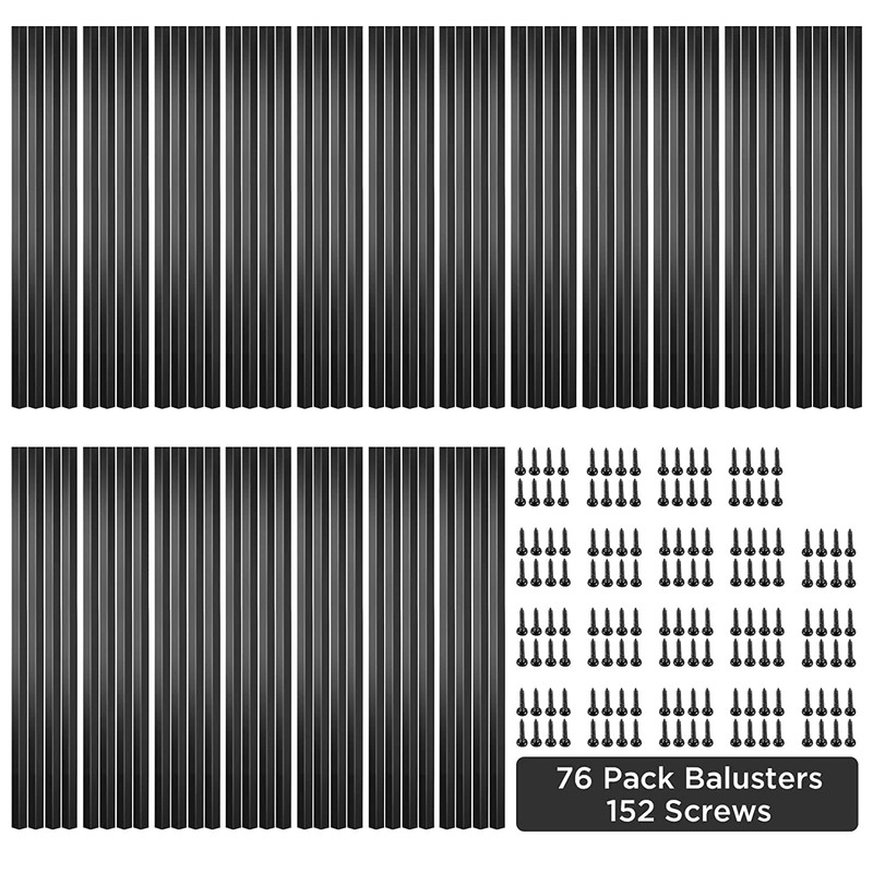 - 【BASIC PARAMETWE】-The length of the black aluminum balusters: 32"; the width: 1"; the baluster quantity:101; the screw quantity:202