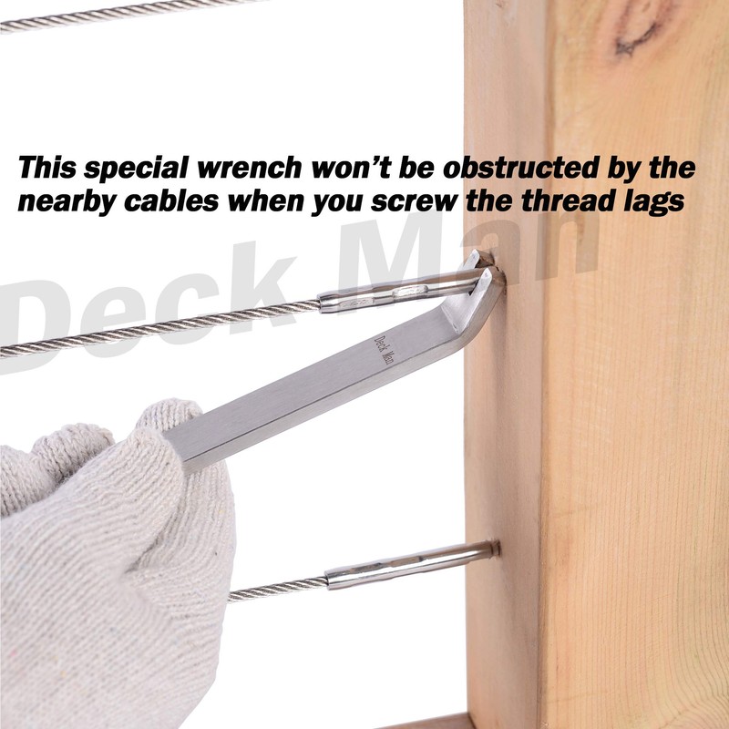 - This is Non-Turnbuckle System according to principle of screwing L&R handed thread lag at the same direction and the both lags will go into the opposite direction,So the cable will be tightened by the R&L handed thread lags without torsion force and damage; The length of cable spanning capability of this kit is the same as other common cable railing kits;