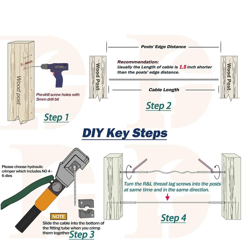 - This Right&Left hand thread screw lags are connected with cable need by using hydraulic crimper(This item not include),and this item go with a correct size dill bit and a special wrench;