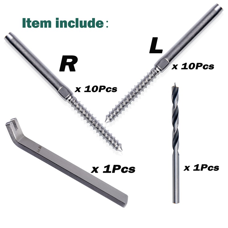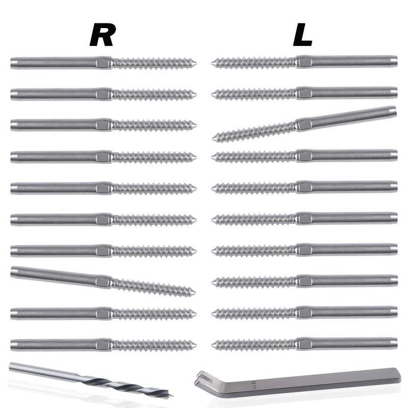 Deck Man 10 Pairs Left&Right Handed Thread Lag Screws for 1/8" Decking Cable Railing Kit/Hardware, Non-Turnbuckle System, Silver
