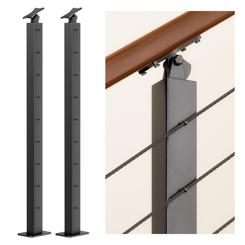 - 【High-Quality Material】This cable railing posts consist of black powder-coated T304 with great rust resistance and will work for a long lifetime. It is ideal for both indoor and outdoor applications like decks, stairs, porches, balconies, and fences;