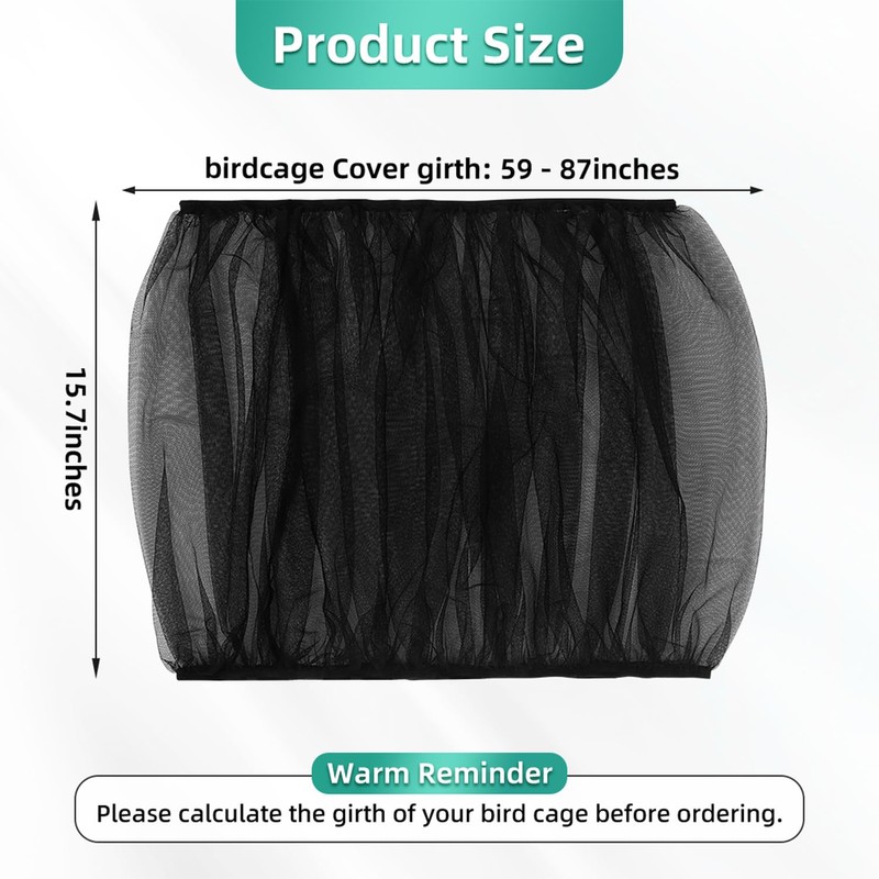 - 【Universal Bird Cage Seed Catcher】 The bird cage cover is fitted with elastic band to keep the birdcage cover firmly in place. It is an adjustable circumference of 59-87inch and a height of 15.7inch, which is suitable for small and medium birdcages. In order to give you a better shopping experience, please check the size of your birdcage before you place an order.