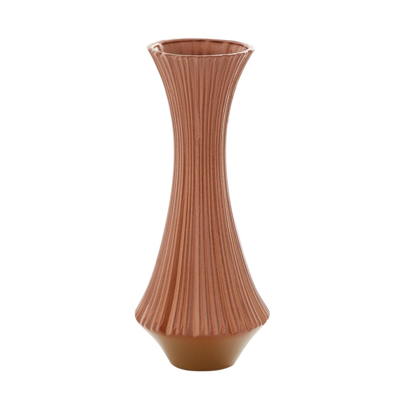 - ORANGE AND RUST VASE FOR FLOWERS: Monochrome opaque and matte light orange terracotta finish graces this trumpet home decor vase