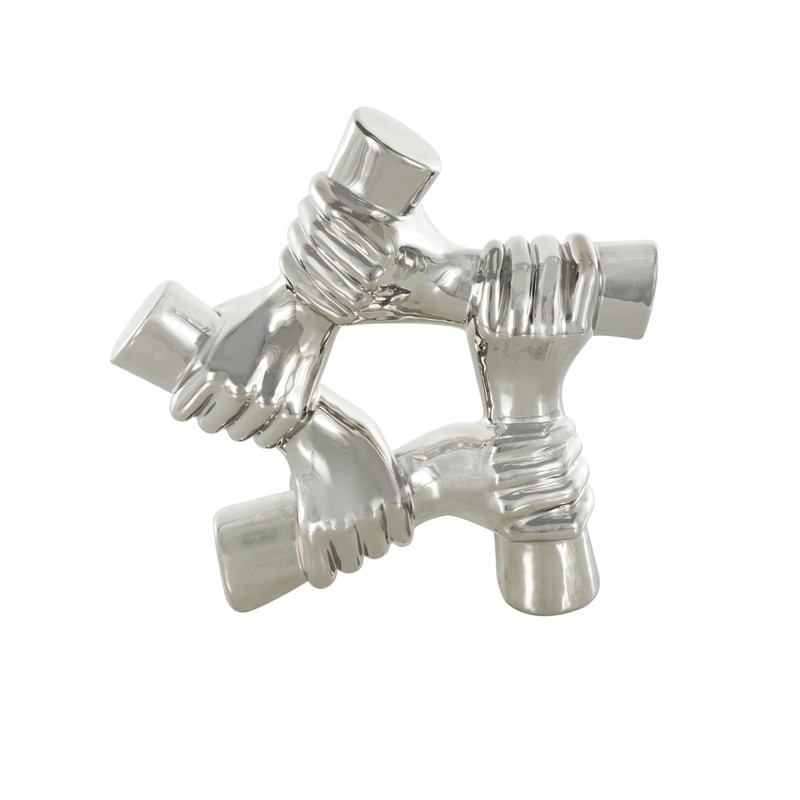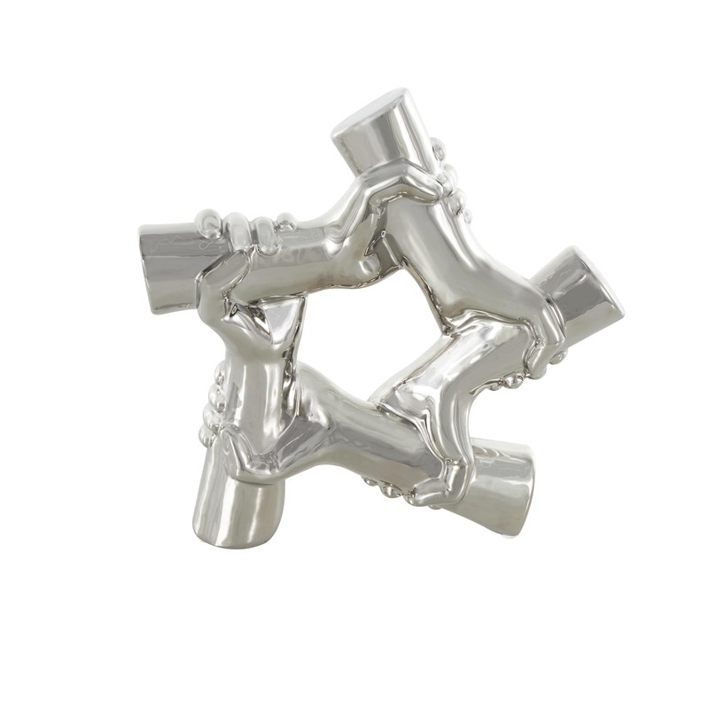 Deco 79 Ceramic Hands Decorative Sculpture Gripping Home Decor Statue, Accent Figurine 13" x 4" x 13", Silver