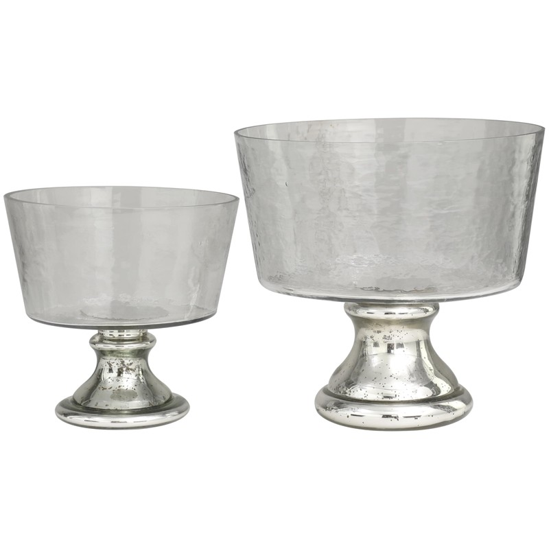 - ROUND KEEPSAKE BOXES: Hammered designer glass bowl rests atop a faux mercury glass pedestal base on these decorative bows