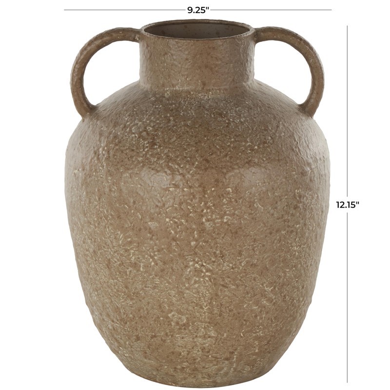 Deco 79 Metal Decorative Vase Antique Inspired Centerpiece Vase with Handles, Flower Vase for Home Decoration 9" x 9" x 12", Brown
