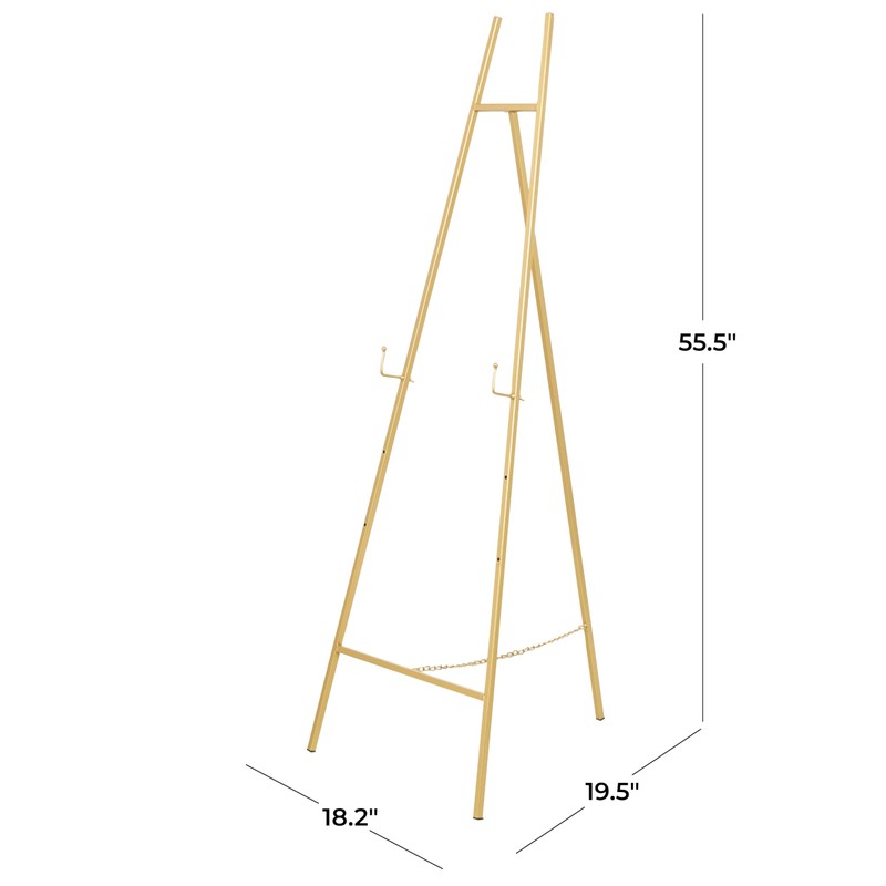 - LARGE SIZE The gold metal easel measures 19.5L x 18.2W x 55.5H inches, and weighs 4.3 lbs