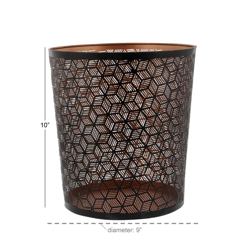 Deco 79 Metal Round Small Waste Bin with Laser Carved Design, 9" x 9" x 10", Black