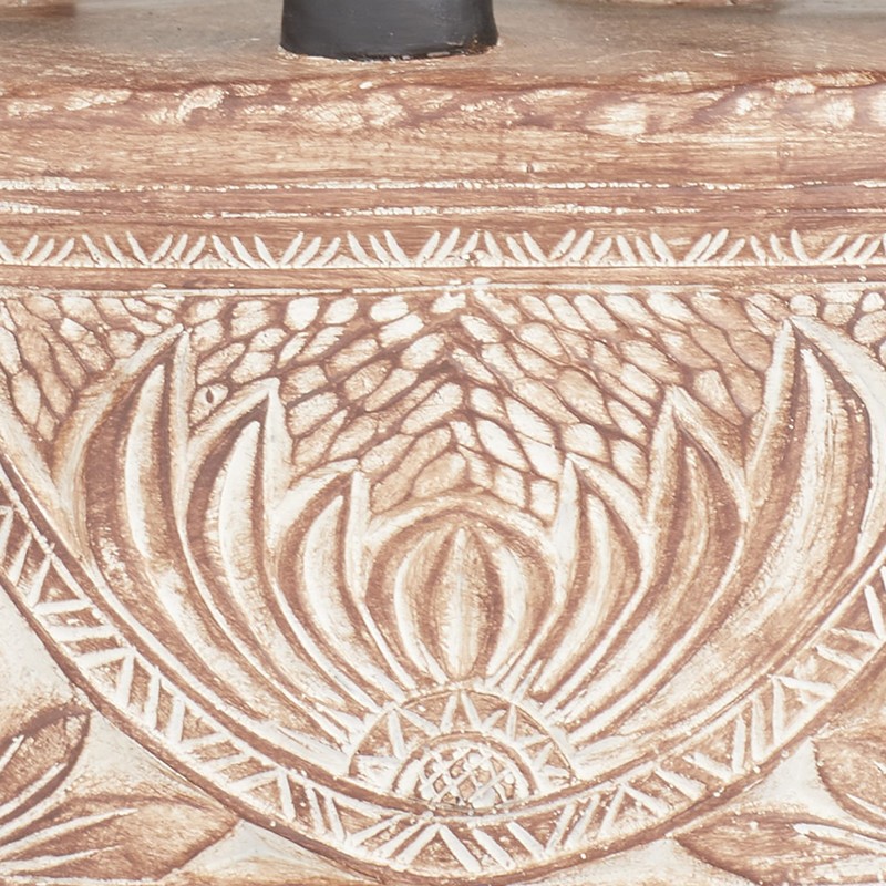 - FEATURES ANIMAL SCULPTURE: This polystone decorative sculpture features stacked giraffe, lion, zebra, and elephant wildlife figurines with floral-patterned oblong base