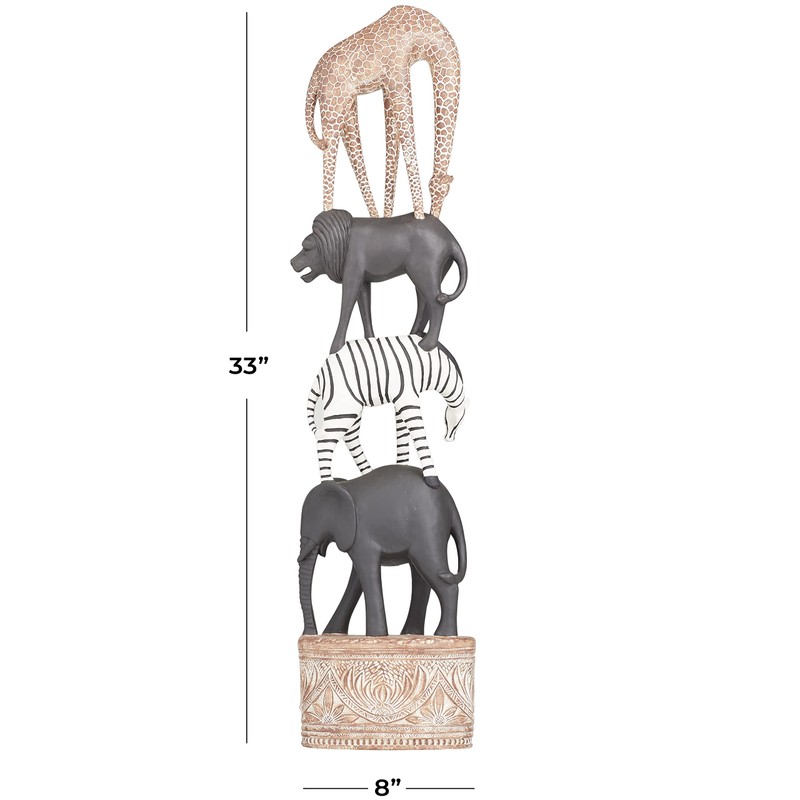 Deco 79 Polystone Safari Animal Sculpture, 8" x 5" x 33", Multi Colored (080374)