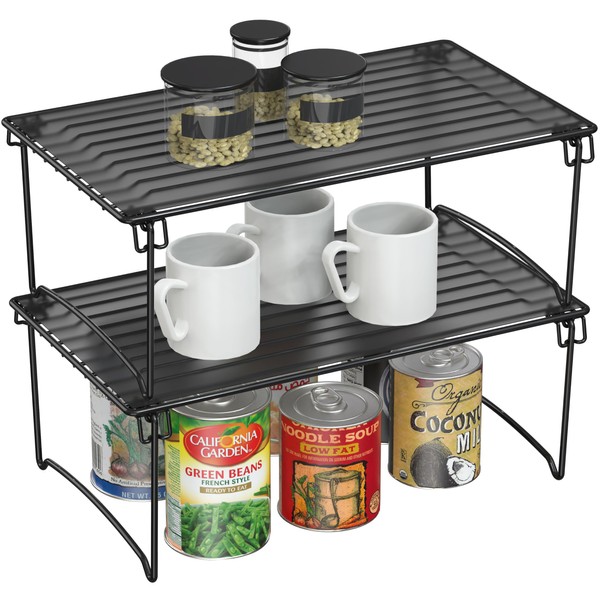 Deco Brothers Stackable Cabinet Shelf Organizer, 2 Pack, Black