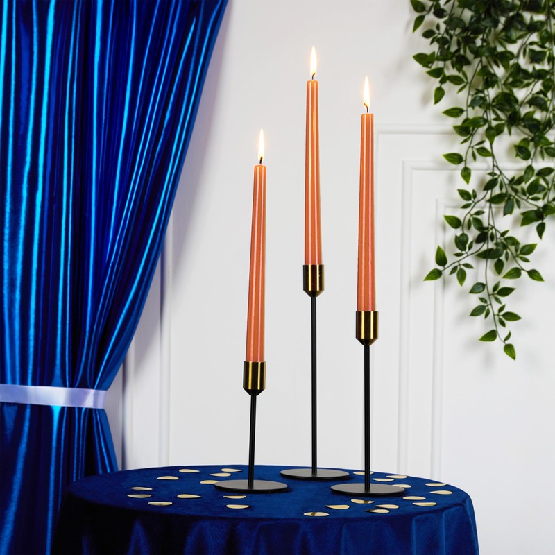 - Elevate your ambiance with our range of tapered candle multipacks. Each candle boasts an impressive 8-hour burn time, and they come in a range of metallic or rustic colours to choose from