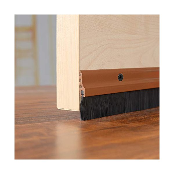 Deco Home Door Seal (1.5" Width X 36.5" Length) Gate Bottom Sealing Strip Draft Stopper with Aluminium Plate & Nylon Bristles for Weather Stripping, Air & Sound Blocking (Chocolate)