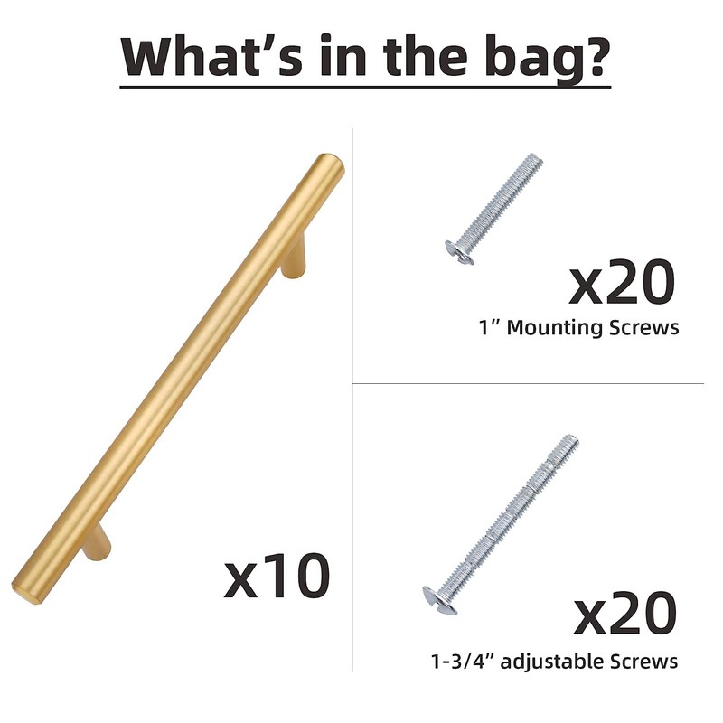 - Easy to Install. Drill holes to install the kitchen cabinet pulls according to spacing; pass through the screw from the back and tighten the pull. Mounting screws are included to mount it on most cabinets and drawers horizontally/vertically.