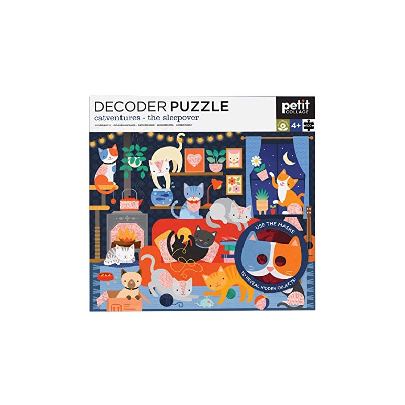 - PUZZLE FOR KIDS – The Catventures Decoder Puzzle from Petit Collage has thick, sturdy pieces that are perfect for little hands. The completed jigsaw puzzle measures 18.5” x 15” and is perfect for ages 4+.
