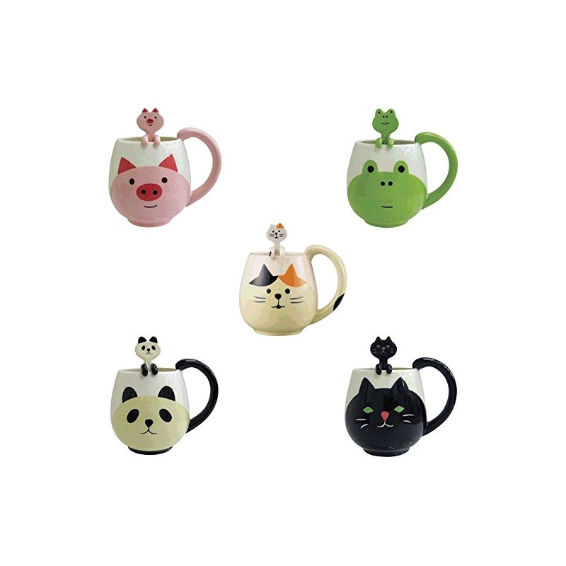 Cb-21709 features: -Microwave safe. -Dishwasher safe. -Designed in Japan by Decole Japan. Product type: -Coffee mug. Color: -Green, white. Material: -Ceramic. Number of items included: -2. Style: -Asian inspired. Pattern: -Animal. Dimensions: -Spoon: 4.5" l. Cup/mug height - top to bottom: -3.75". Cup/mug width - side to side: -5". Cup/mug depth - front to back: -3.75". Overall product weight: -0.63 lbs.