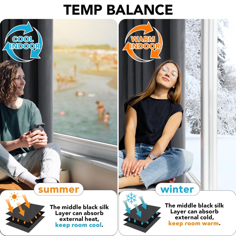 - ENERGY SAVING - Bedroom blackout curtains will help on reducing energy bills by keeping light out and cool homes during hot summers and keeping the cold out during the winter months.
