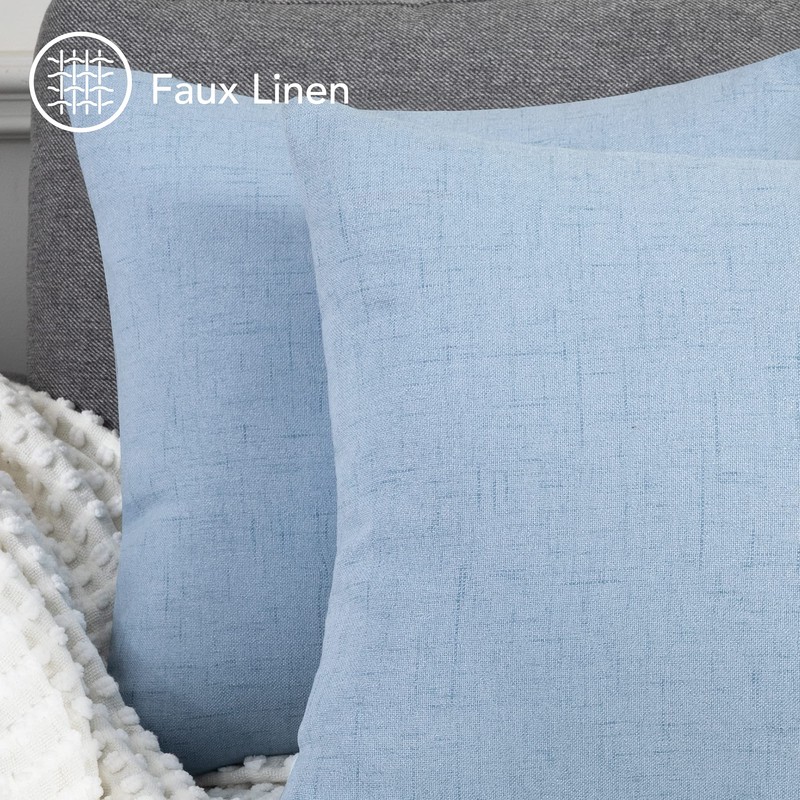 Deconovo set of 2 Square Cushion Covers, Faux Linen Throw Pillow Cases Cushion Protectors for Chairs with Invisible Zipper, 26x26 Inch, Baby Blue