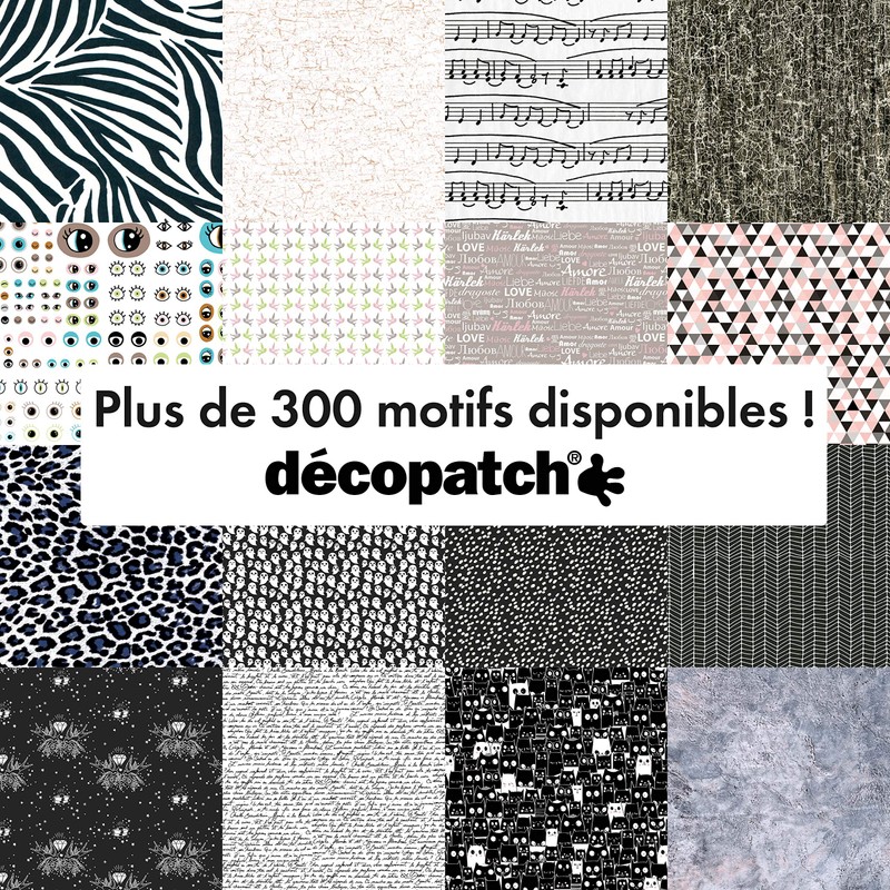 • Decopatch is a range of uniquely designed papers which can be applied to almost any surface using Decopatch varnish glue and a brush