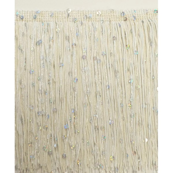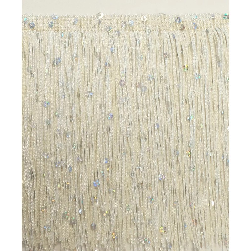 - 6" (15cm) long Sparkling Sequin Chainette Fringe Trim (Style# CFS06), Off White Ivory #OW (White Ivory, Cream Ivory, Off White) 27 Yards (82 ft/25m)