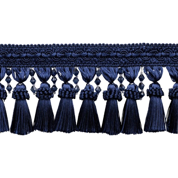 - 4" (10cm) Elegant Beaded Tassel Fringe with Fancy Gimp Header | Fringe Trim # BTFCT4,, Dark Navy Blue #J3 (Dark Blue) 5 Yards (15 ft/4.5m)