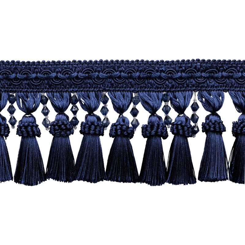 DÉCOPRO (TM) Beaded Tassel Fringe with Gimp Header, Color# J3 - Dark Navy Blue [5 Yards]