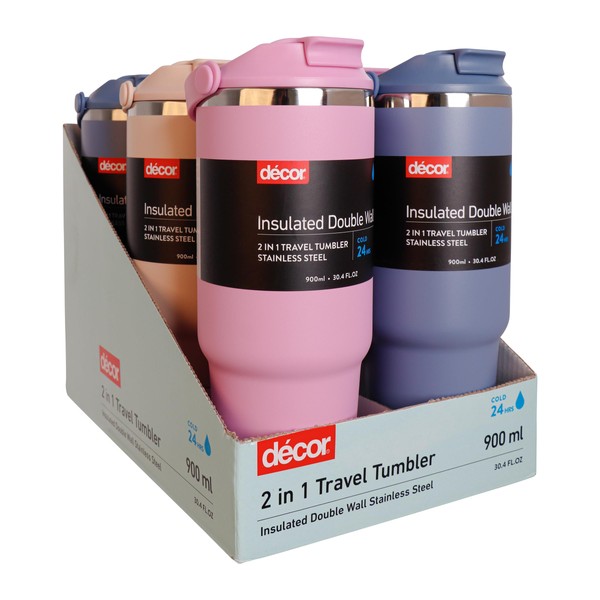 Decor 2-in-1 Double Wall Stainless Steel Travel Tumbler, 900 ml Capacity