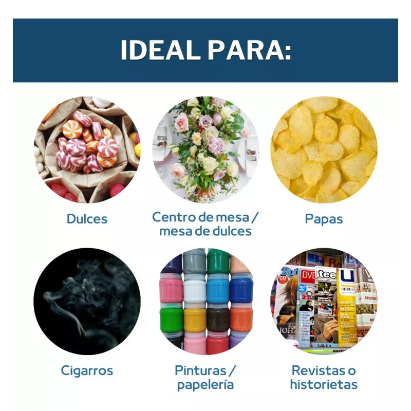 El Tarjero Grande es un exhibidor tipo tarjetero, una herramienta multifuncional diseñada para presentar una amplia variedad de productos de manera impecable. Este versátil artículo es perfecto para exhibir elementos como cigarros, dulces, papas, chicles, y mucho más. No solo eso, también puede convertirse en un centro de mesa elegante y llamativo en eventos especiales, desde XV años y bodas hasta bautizos, baby showers y primera comunión. Además, es ideal para mostrar artículos de papelería como plumas, plumones, pinturas, así como revistas e historietas de diferentes tamaños. Ya sea que desee darle un toque de sofisticación a su negocio o revender estos exhibidores, el Tarjero Grande es la elección perfecta.