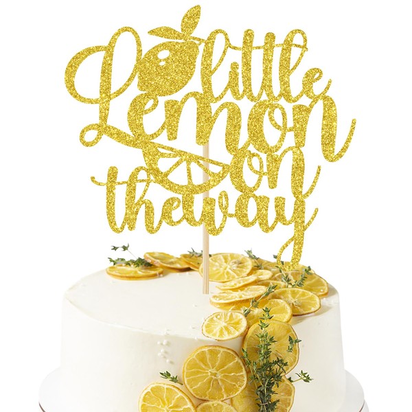 Decoración de pastel con purpurina dorada A Little Lemon is on the Way, A Baby is Brewing/Aloha Baby, anuncio de embarazo con temática de limonada, baby shower, decoración de fiesta de revelación de género