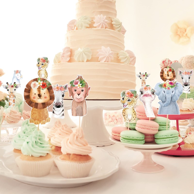 - Lo que obtendrás: el paquete viene con 48 decoraciones para cupcakes de cumpleaños con temática de animales de la selva.
