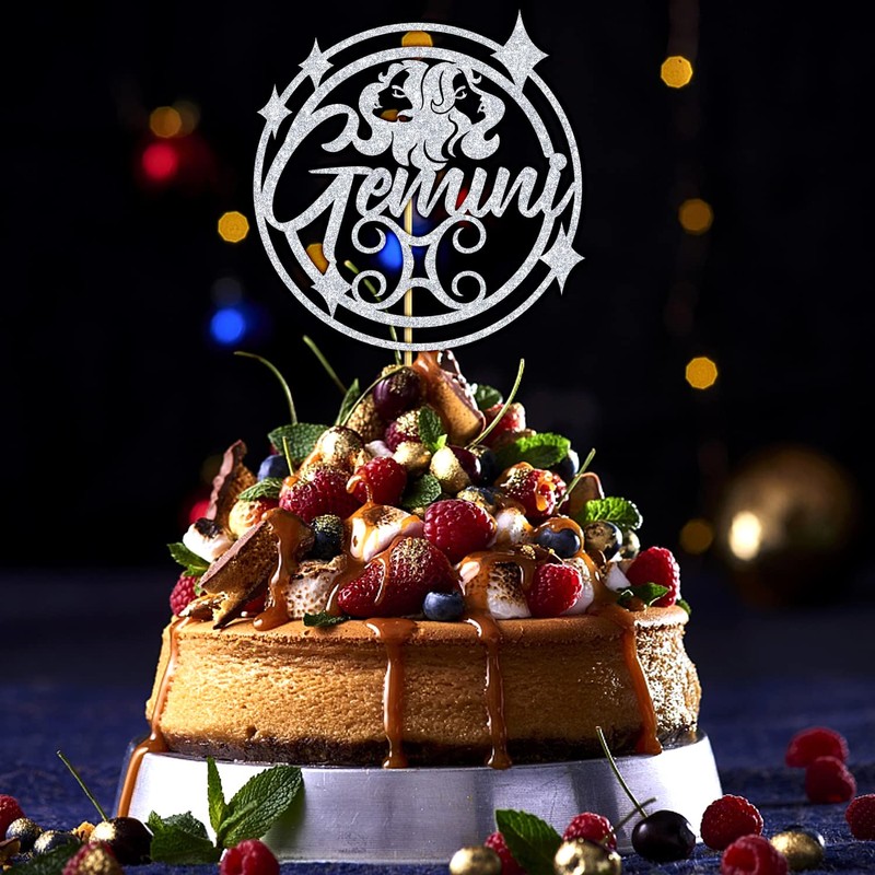 Decoración para tarta de cumpleaños con purpurina plateada, temática de constelación del zodiaco mayo junio