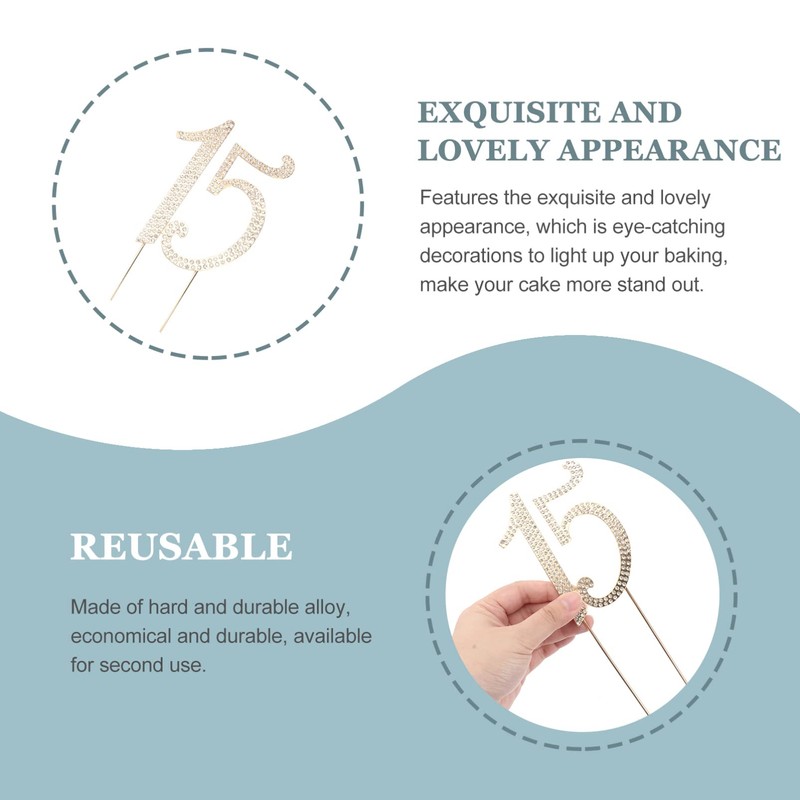 Diamantes de imitación decorativos de aniversario de cumpleaños, 15 adornos para tartas para niñas, decoración perfecta para fiestas de cumpleaños o suministros de fiesta de aniversario, banquetes y otras reuniones formales o personales.