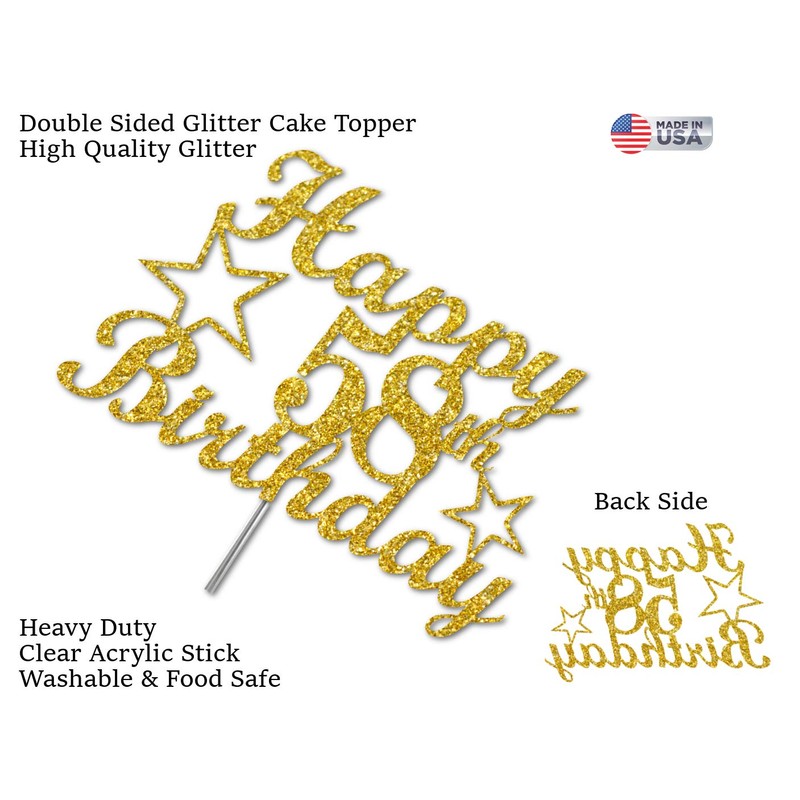Decoración para tartas de cumpleaños con purpurina dorada, ideas de decoración de fiestas, calidad premium, resistente purpurina de doble cara, palo de acrílico. Fabricado en Estados Unidos (58)