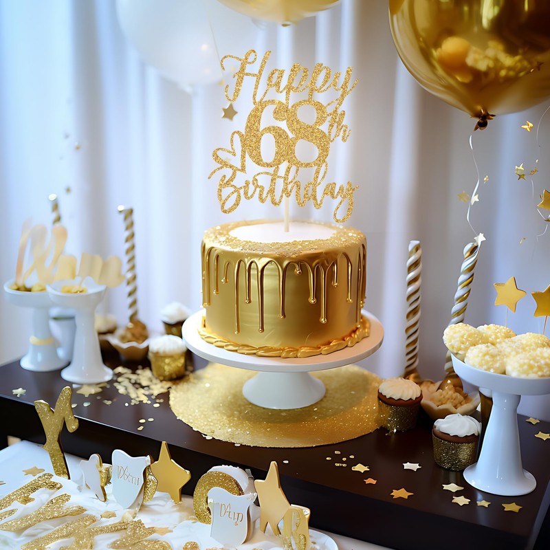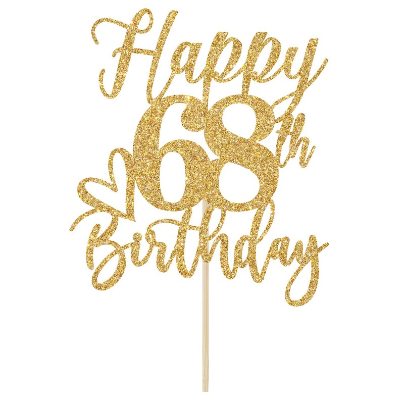Decoración para tartas de feliz cumpleaños 68, decoraciones de cumpleaños 68 para hombres/mujeres, saludos a 68 años, Hello 68, suministros para fiesta de feliz cumpleaños 68, purpurina dorada