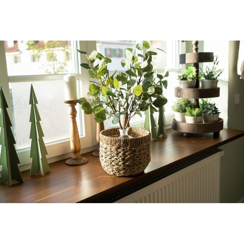 Thanks to the natural look of straw or sea grass, these containers are suitable for creating a particularly homely warm indoor climate and are also suitable for Nordic style. The wicker basket is very sturdy and versatile.