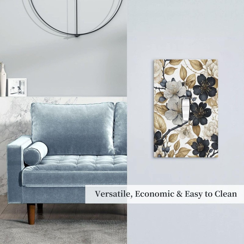 Decorative Art Light Switch Covers Gilded Dark Blooms Single Toggle Wall Plate Decorative Switchcover Electrical Switchplate for Home Decor