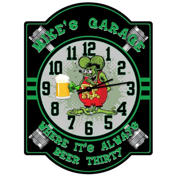Decorative Concepts Rat Fink Beer Thirty Customized Green Garage Clock