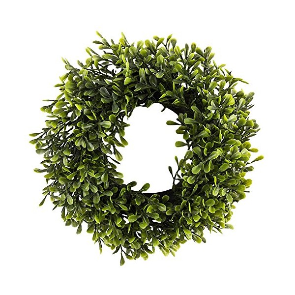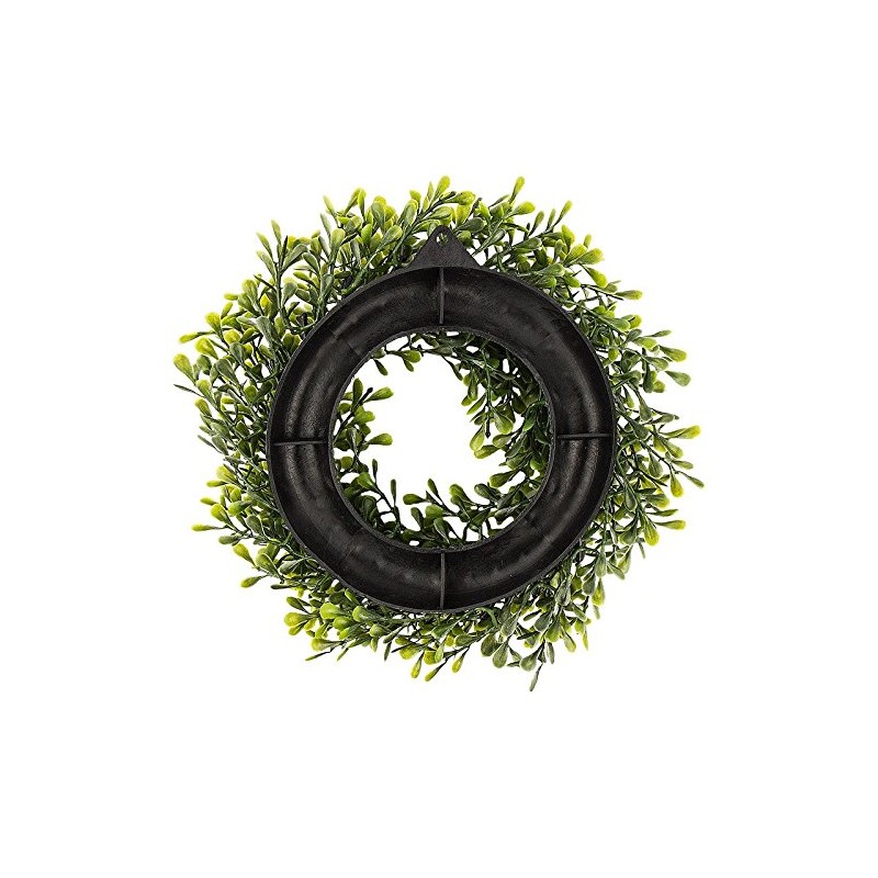 - Decorative boxwood wreath made of plastic yet deceptively real