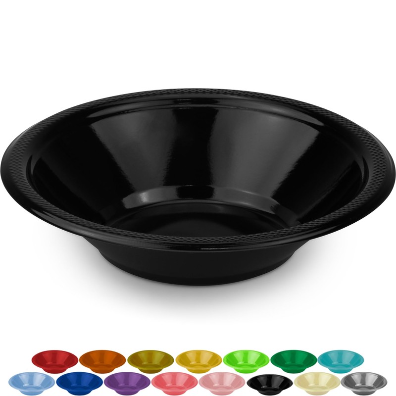 DecorRack 24 Small Plastic Bowls, 12 oz Cereal and Salad Bowls, 7 inch Disposable Tableware Kids Birthday Party Fruit Bowl, Black (Pack of 24)
