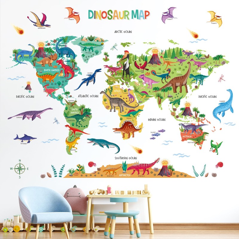 A fabulous set of Dinosaur World Map are a fantastic collection for boys or girls wall.