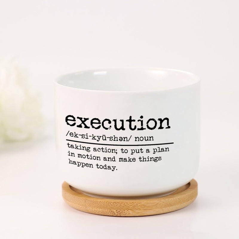 DecStic Execution Definition Ceramic Planters Bible Verse Planters for Outdoor Plants with Drainage Holes and Saucers Pot for Home Office Desk Garden