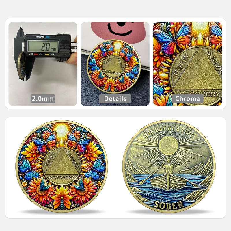 deDecoml Inspirational Sobriety Challenge Coin with Vibrant Nature and Recovery Symbols (5 Years)
