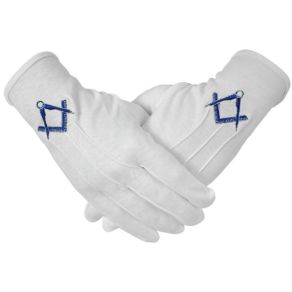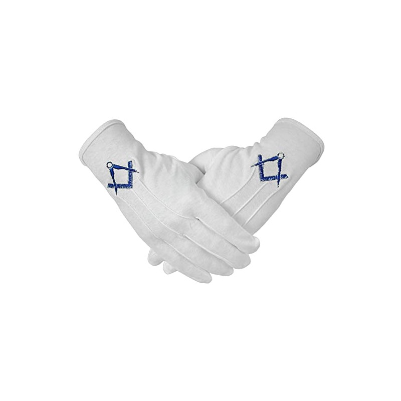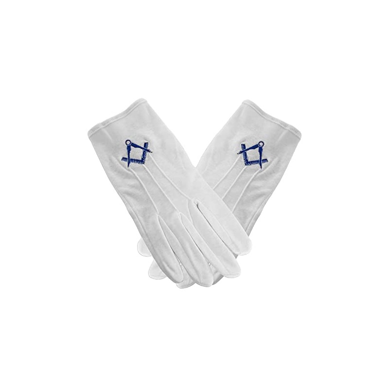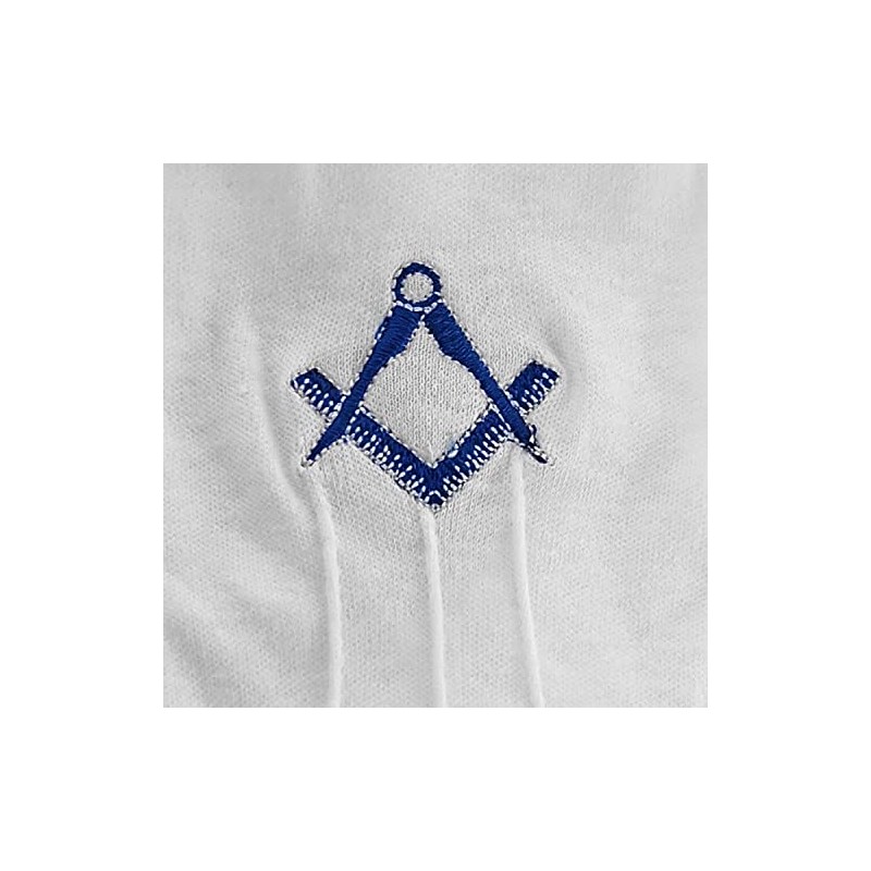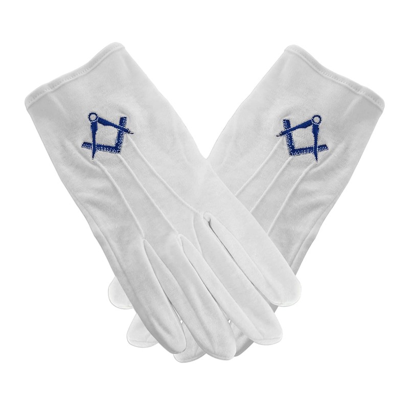 deDecoml Masonic Gloves Embroidered With Navy Blue Square & Compass Cotton