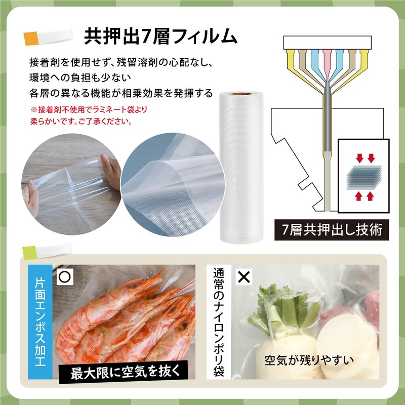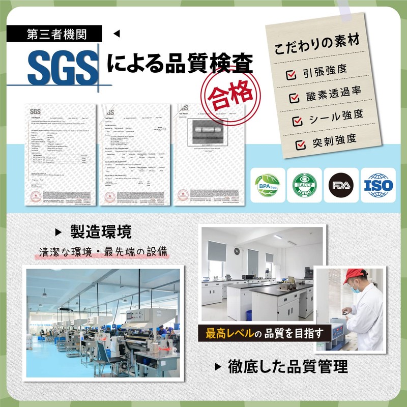 - Safe and Secure: This 7-layer food storage bag is made with a combination of PA and PE without the use of adhesives. You can use it with confidence knowing that it has acquired FDA certification by the third party SGS and has passed inspections based on food hygiene laws