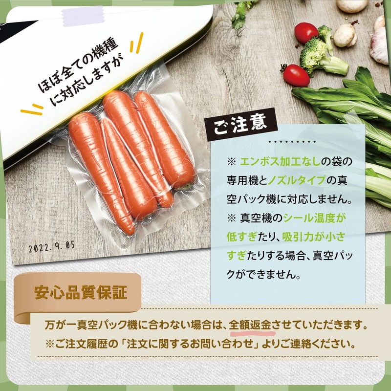 - Wide range of uses: Can be used for freezing food packaging from -40° to high temperature voile sterilization of 110° to 30 minutes. Easy to use for vacuum cooking and even for thawing in the microwave. Can be used with almost all vacuum sealer machines (maximum bag width of up to 7.9 inches (20 cm)). Not compatible with non-embossed bags