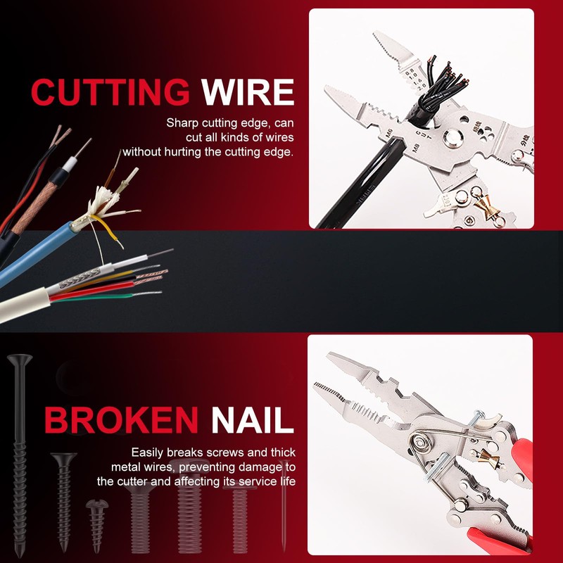 1. Multifunctional pliers are made of high-quality, durable and wear-resistant carbon steel. It does not deform easily even after prolonged use and has a long service life, which ensures long-lasting performance. The ergonomically designed, non-slip and soft handle provides firm grip and reduces hand fatigue.